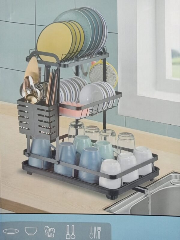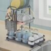 رف تجفيف الأطباق من الإينوكس بطابقين 60 سم