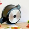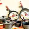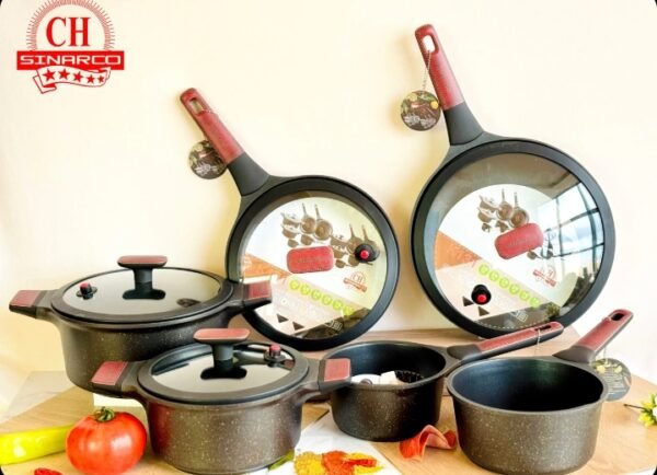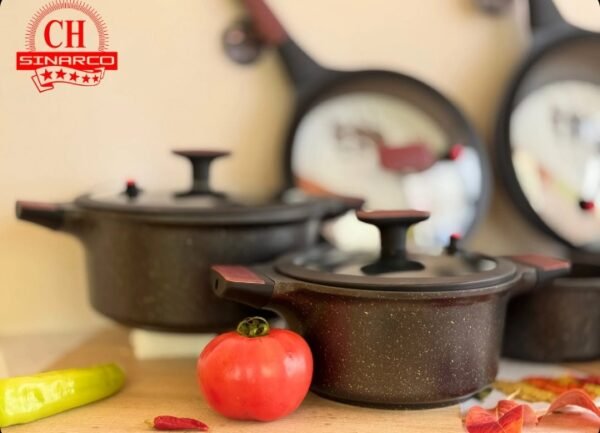 Description mpatible avec les plaques de cuisson à gaz, électriques, vitrocéramiques et induction. durables et compatibles pour une cuisson . Idéal pour un rendu robuste et élégant Empêche la déformation dans le temps et garantit une diffusion homogène de la chaleur pour de délicieux résultats de cuisson.résistant grâce à une couche de finition renforcée Idéal pour une parfaite surveillance de vos plats et une élégance au quotidien. nouvelle génération avec une base dure Sa Profondeur de poêle est idéale pour les cuissons familiales Poignée est gage de sécurité (ne chauffe pas) avec des détails en cuire disponible en deux couleurs et de confort Sa couleur extérieure qualitative apporte une plus Valus à vos cuisines efficace avec une surface lisse. Vous aurez une pot spéciale dans votre cuisine. Design moderne. Excellent marmite très utile et longue durée de vie granite. Poids approprié pour une utilisation intensive et continue. Lave-vaisselle. Nous garantissons la qualité de nos produits ce qui la rend indéformable à l’utilisation, même soumis à des températures de cuisson très élevées vous permet de cuisiner sans matière grasse préservant ainsi les qualités gustatives et diététiques de vos aliments Marmite 20Cm avec couvercle en verre avec silicone Marmite 22Cm avec couvercle en verre avec silicone Casserole 16Cm Casserole 18Cm Poele 24Cm avec couvercle en verre avec silicone Poele 28 Cm avec couvercle en verre avec silicone