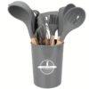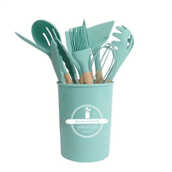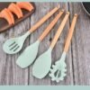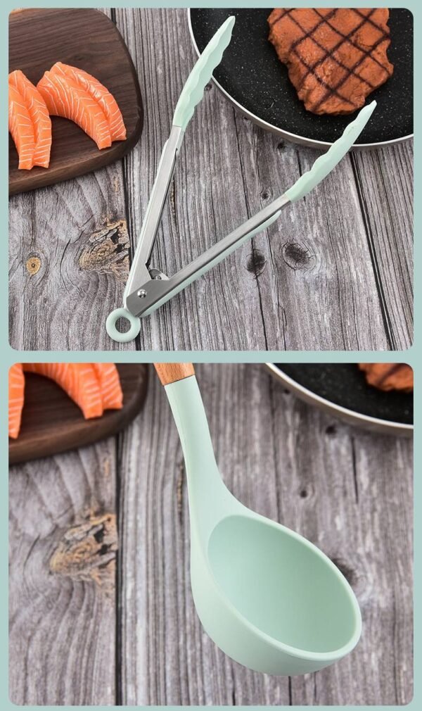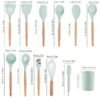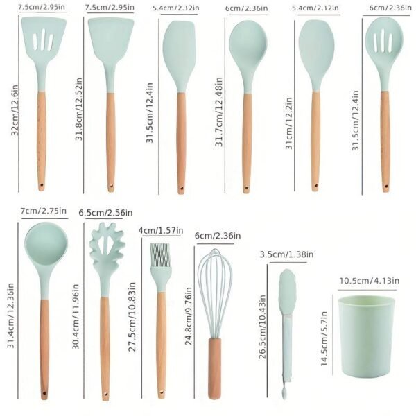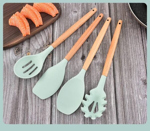 مجموعة أدوات مطبخ سيليكونية بمقابض خشبية غير لاصقة 12 قطعة