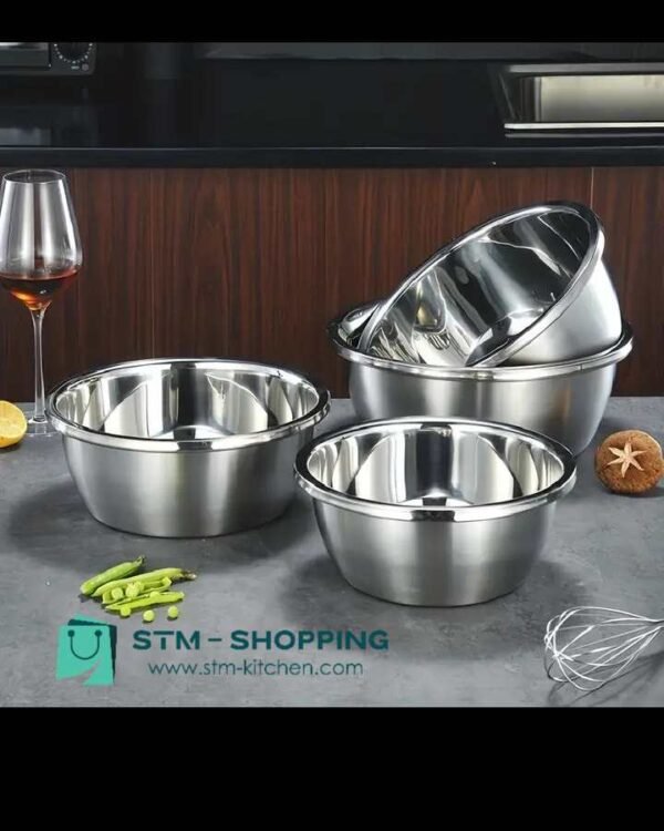 5 قطع، أوعية خلط من الفولاذ المقاوم للصدأ 18/10، سهلة التنظيف، موفرة للمساحة بأحجام 5، مثالية للطبخ والخبز والتحضير التفاصيل التقنية العلامة التجارية STM اللون فضي أبعاد المنتج 24سم+26سم+28سم+30سم+36سم المادة ستانلس ستيل 18/8 الميزات الخاصة خالي من الرصاص