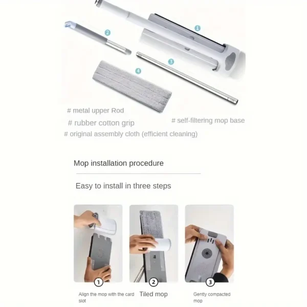 ممسحة مسطحة ذات عمل مزدوج مع تصميم للتنظيف الذاتي، سهلة العصر للاستخدام في غرفة المعيشة، غرفة النوم، المطبخ، الحمام، وتنظيف الأرضيات، مصنوعة من ABS، للاستخدام الرطب والجاف. التفاصيل الإستعمالات المناسبة: غرفة المعيشة,غرفة نوم,الحمام,مطبخ,الأرضية الأسطح و المساحات الكبرى المادة: الفولاذ المقاوم للصدأ و ماذة ABS