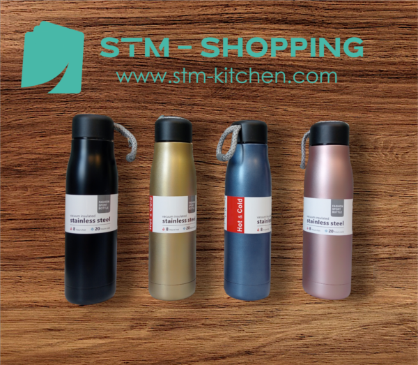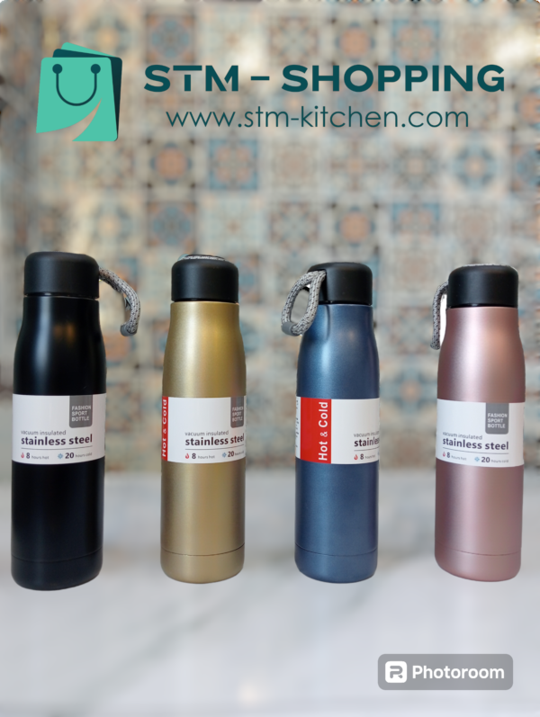 زجاجة مياه من الستانلس ستيل (إينوكس 304) ، مزدوجة الجدار ومعزولة بتفريغ الهواء، يحفظ الحرارة 8 ساعات و يحفظ البرودة 20 ساعة بفم واسع ومناسبة للاطفال مع غطاء محمول مانع للتسرب بسعة 500. ملليلتر